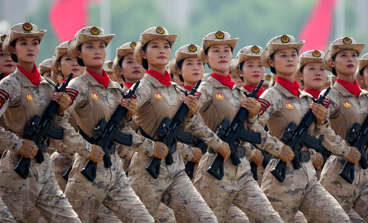 2025年9月3日,纪念中国人民抗日战争暨世界反法西斯战争胜利80周年阅兵式现场,英姿飒爽的女民兵方队步伐铿锵走过天安门广场,光荣接受习近平总书记检阅,接受党和人民检阅。