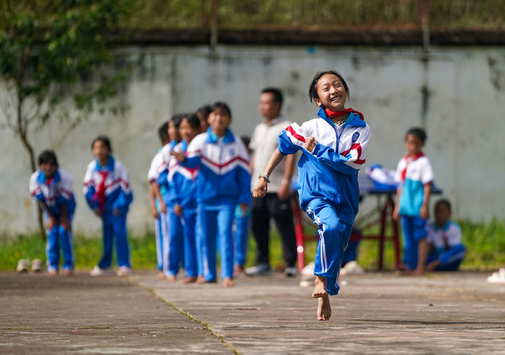 2025年9月15日,云南省普洱市孟连傣族拉祜族佤族自治县腊福小学学生课间在操场进行奔跑接力比赛。(新华社记者 陈欣波/摄)