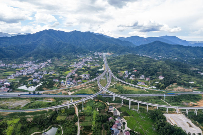 2025年8月19日拍摄的湖南炉慈高速慈利西互通枢纽(无人机照片)。炉慈高速是G59呼和浩特至北海高速公路的一部分,位于常德市石门县及张家界市慈利县境内。这条高速将长江三峡、壶瓶山、张家界等黄金旅游景点串珠成链,构建起湘鄂两省“两小时旅游圈”。(新华社记者 陈思汗/摄)