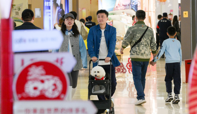 2025年1月30日,游客在中免集团海口日月广场免税店选购免税商品。(新华社记者 杨冠宇/摄)