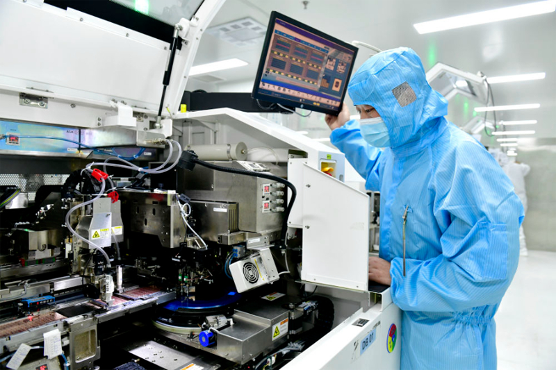 2025年2月13日,在山东一家电子有限公司,工作人员在生产线值守。(新华社记者 郭绪雷/摄)