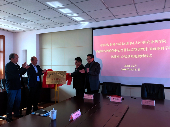 培训班结束后,“中国农业科学院培训中心培训基地挂牌仪式”在中国农业科学院西部农业研究中心举行。
