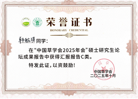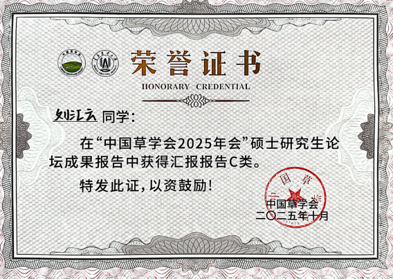 近三年,草原所研究生在中国草学会历届年会上累计获得各类奖励10余项,未来将持续推进研究生高质量培养体系建设,着力提升研究生科研素养和学术交流能力,鼓励更多青年学子走向国内外学术舞台,以扎实的学术成果和昂扬的奋斗姿态投身草业科技创新,为推动我国草原事业高质量发展贡献智慧与力量。