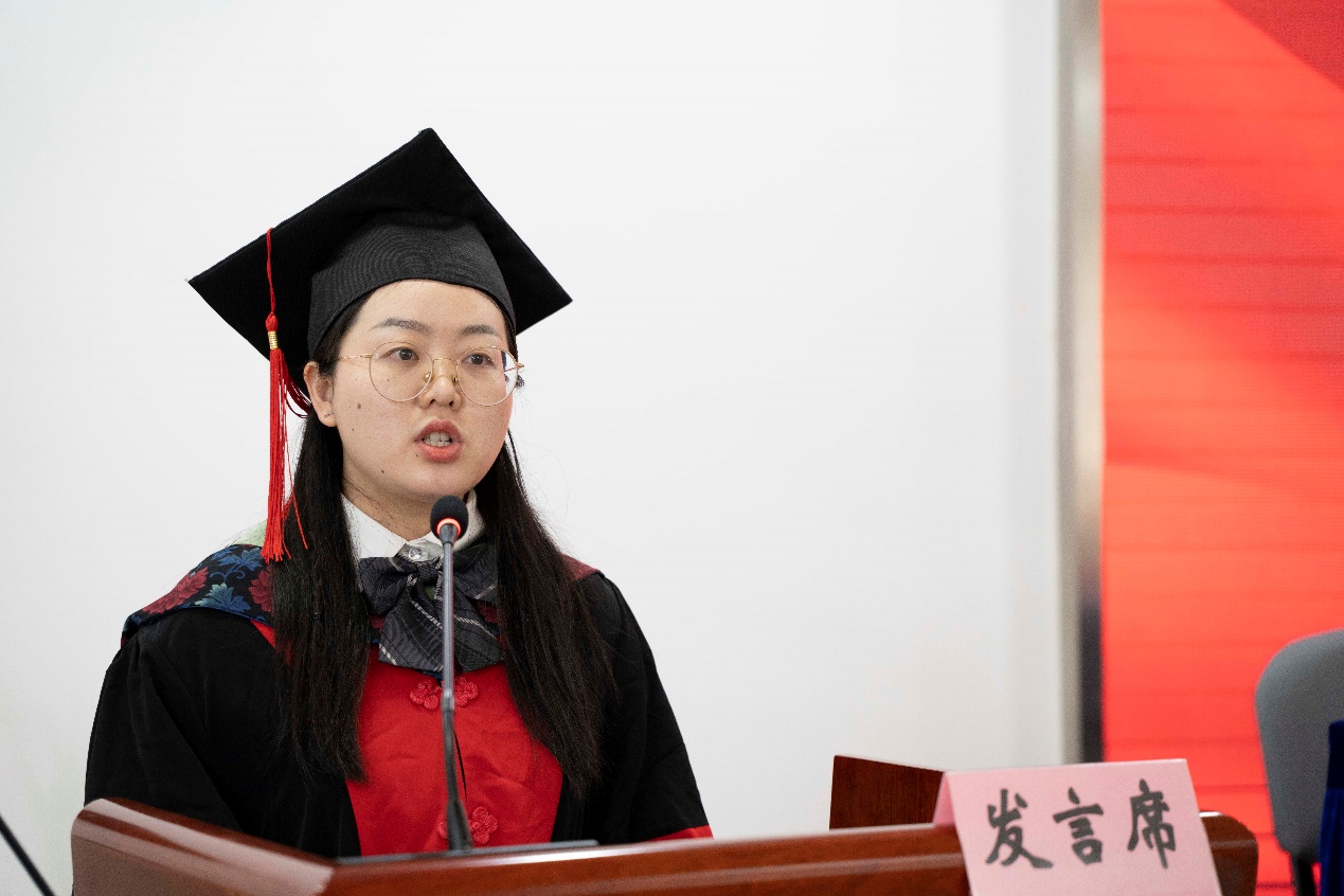 2021级博士研究生韦秋合代表全体在所研究生发言。她以“致敬科研人”为题,向顺利完成学业、即将离校的毕业生同学们送上了真挚祝福和由衷敬意,祝愿他们带着学术的智慧和生活的理想,踏上新征程,始终保持科研人的坚韧与执着,在各自领域里发光发热,开启人生新的篇章。