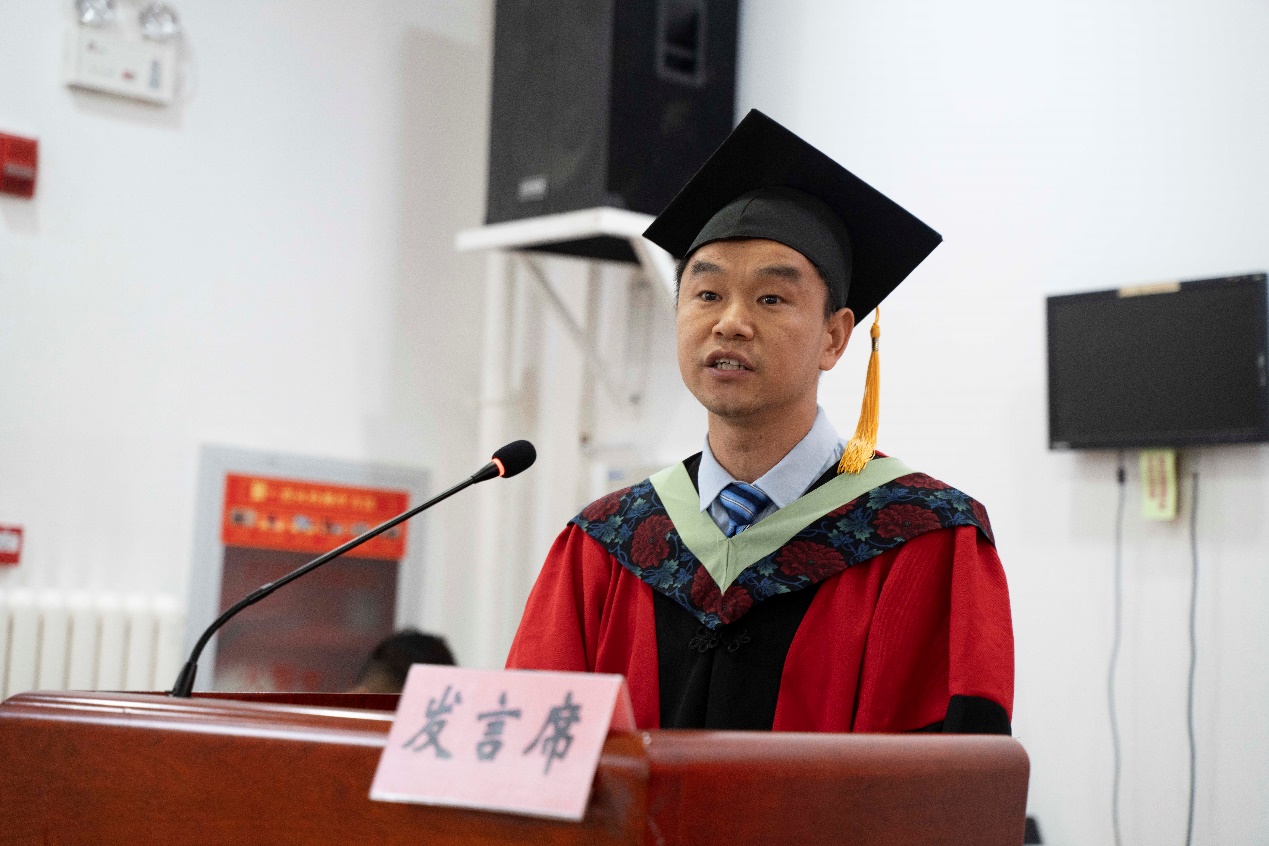 博士生导师曹立冬研究员代表研究所全体导师向毕业生同学们送上衷心的祝福,同时他还对同学们今后的学习工作提出了几点中肯的建议:要乐观面对人生中的不如意,要对生活和工作充满激情,要学会在危机中寻找机会、在感恩中传递梦想,要加强锻炼,拥有一个强健的体魄。