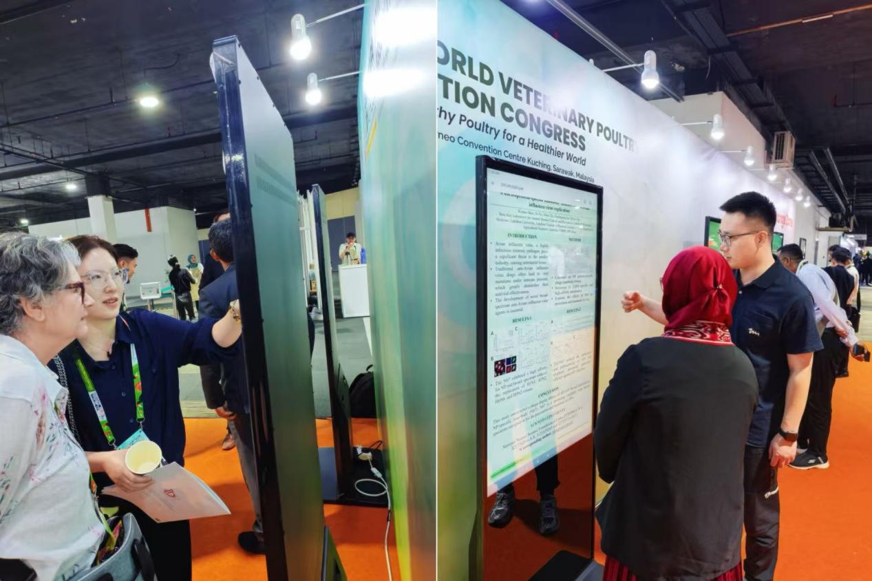 近日,第二十三届世界禽病大会在马来西亚古晋举办。兰州兽医研究所2023级在读博士研究生王丹、共建学院兰州大学动物医学与生物安全学院2022级在读博士生申汶涛,在副所长、动物病毒分子生态学团队首席朱启运研究员和团队老师曲光刚研究员的带领下参会,共同参与国际学术交流,展现研究所学子专业素养。